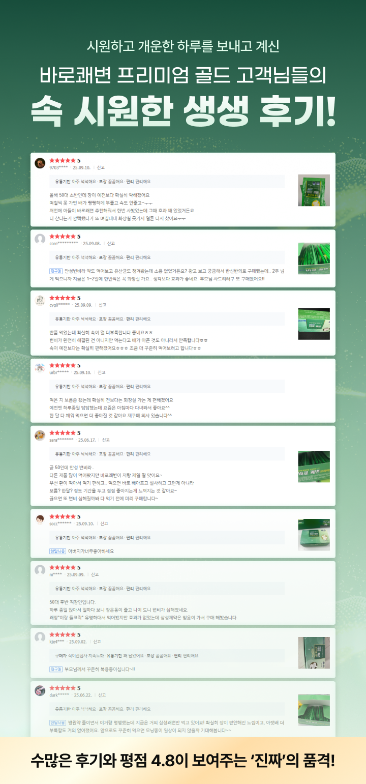 - 개인정보 수집주체 : 삼성제약 바로쾌변 프리미엄 골드