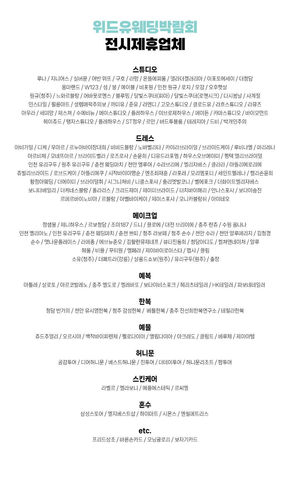 위드유웨딩 | 사업자번호 : 267-77-00492 주)더블유와이피코리아(WYP KOREA Co., Ltd.) | 사업자번호 : 662-88-02726 대표:유다연 | T.서울특별시 강남구 언주로125길 4, B동 L층 103호(논현동) COPYRIGHT 위드유웨딩. ALL RIGHTS RESERVED.
